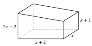 [tex]\qquad V=\dfrac{3(x+1)(x+2)}{2}\cdot x=\dfrac{3x(x+1)(x+2)}{2}.[/tex]