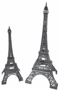 A figura a seguir representa duas miniaturas da Torre Eiffel feitas do mesmo material. Sabe-se que a miniatura menor foi feita usando a escala [tex]1:100[/tex] e tem massa de [tex]500[/tex] gramas. Se a segunda torre foi feita na escala [tex]1:50[/tex], qual sua massa?