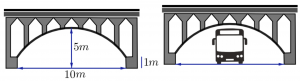 Para que um ônibus com [tex]3[/tex] m de largura passe tangenciando o arco, qual deve ser a medida de sua altura?