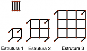 Cada uma das unidades metálicas que forma os lados dos quadrados e os pés das estruturas possui [tex]1[/tex] m de comprimento. Seguindo o padrão de construção, qual o número da estrutura metálica cuja construção utilizará [tex]224[/tex] m de metal?