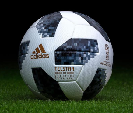 Com os clássicos gomos pretos e brancos transformados em estampas metálicas e artes gráficas com efeito texturizado, a Telstar 18 tem design futurista. Foram feitas duas versões: uma preto e branco, utilizada na fase de grupos; e outra com tons de vemelho, a Telstar Mechta 18, utilizada a partir das oitavas.
