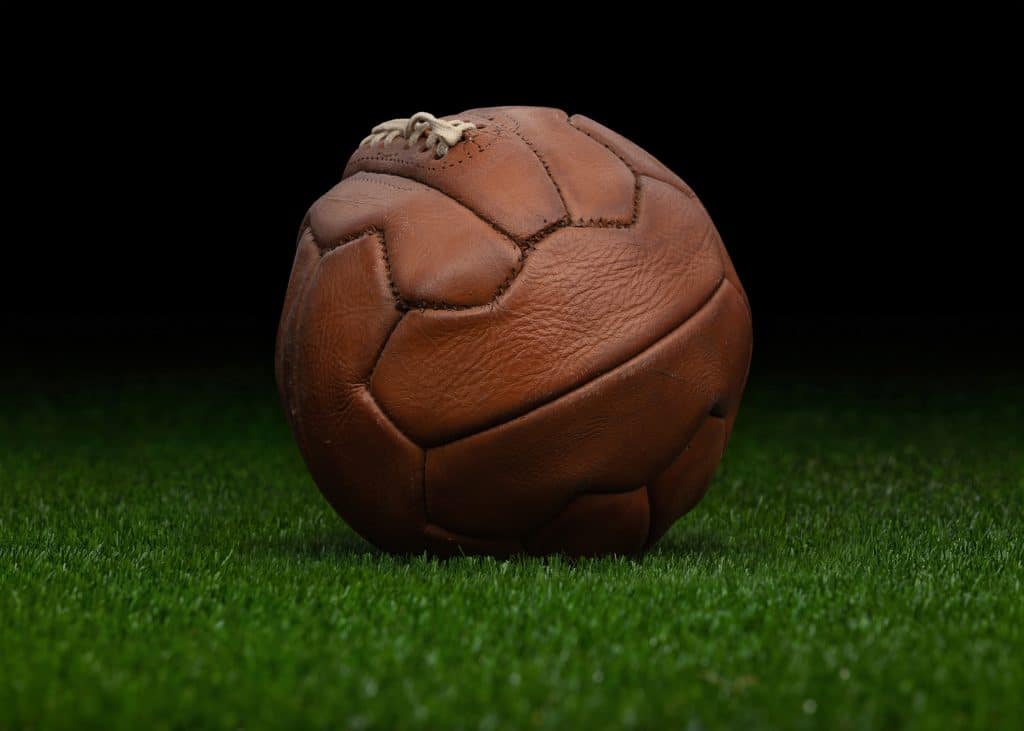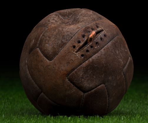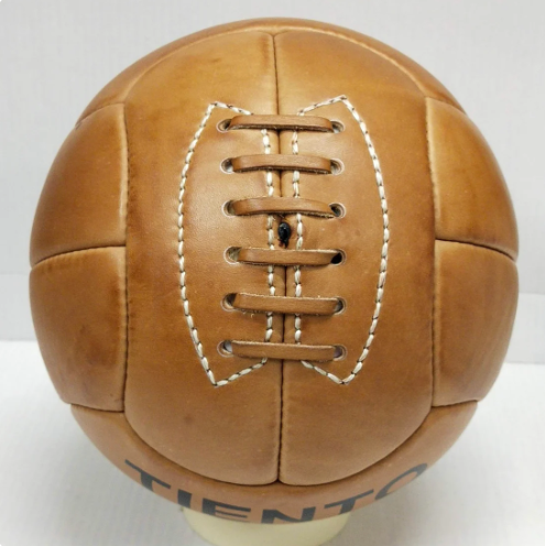 Este é o Modelo T, uma das bolas mais conhecidas de todos os tempos. Era fabricada na Inglaterra, com couro marrom, fechada com cadarço e composta por painéis em forma de T. A também chamada bola de capotão possuía costuras externas e o bico de encher ficava para fora. Na chuva, ela absorvia água e ficava muito pesada.